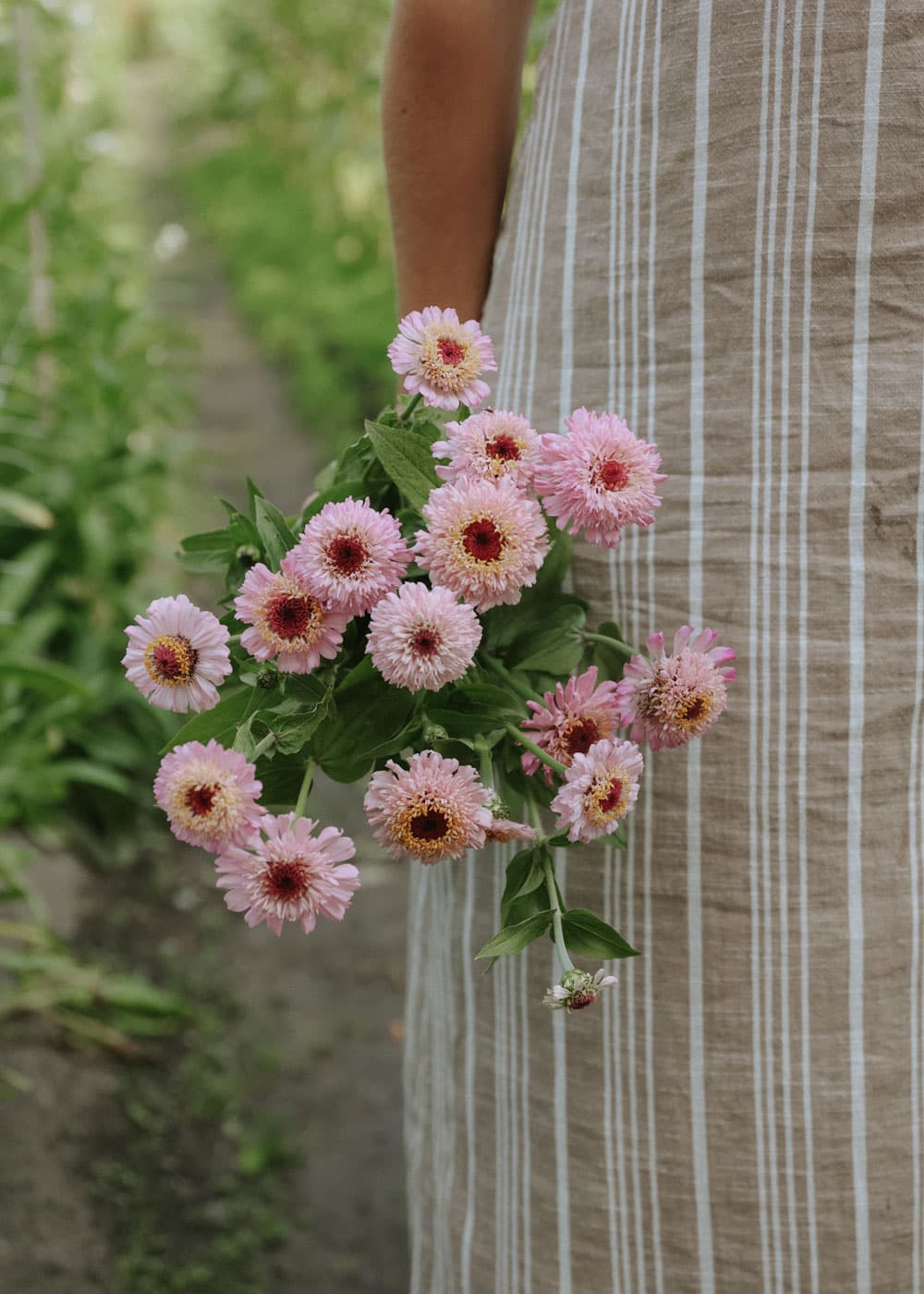 Denna sagolika zinniasort är verkligen i en klass för sig. Zinderella Lilac har vackra blommor i smakfulla rosaaktiga toner som även går lite åt lavendelfärgat med en mörk mitt. När vi såg denna ljuvliga zinniasort tog den oss med storm direkt och vi var helt enkelt tvungna att ta in den i vårt sortiment. Zinderella Lilac är en otroligt lättodlad och tacksam sommarblomma. Den får stadiga och robusta stjälkar som passar utmärkt för snitt. Tack vare sin långa hållbarhet står den länge i vas och är ett ljuvligt inslag i buketter. Den här sorten är helt otrolig i rabatten och är även väldigt omtyckt av alla våra pollinatörer.